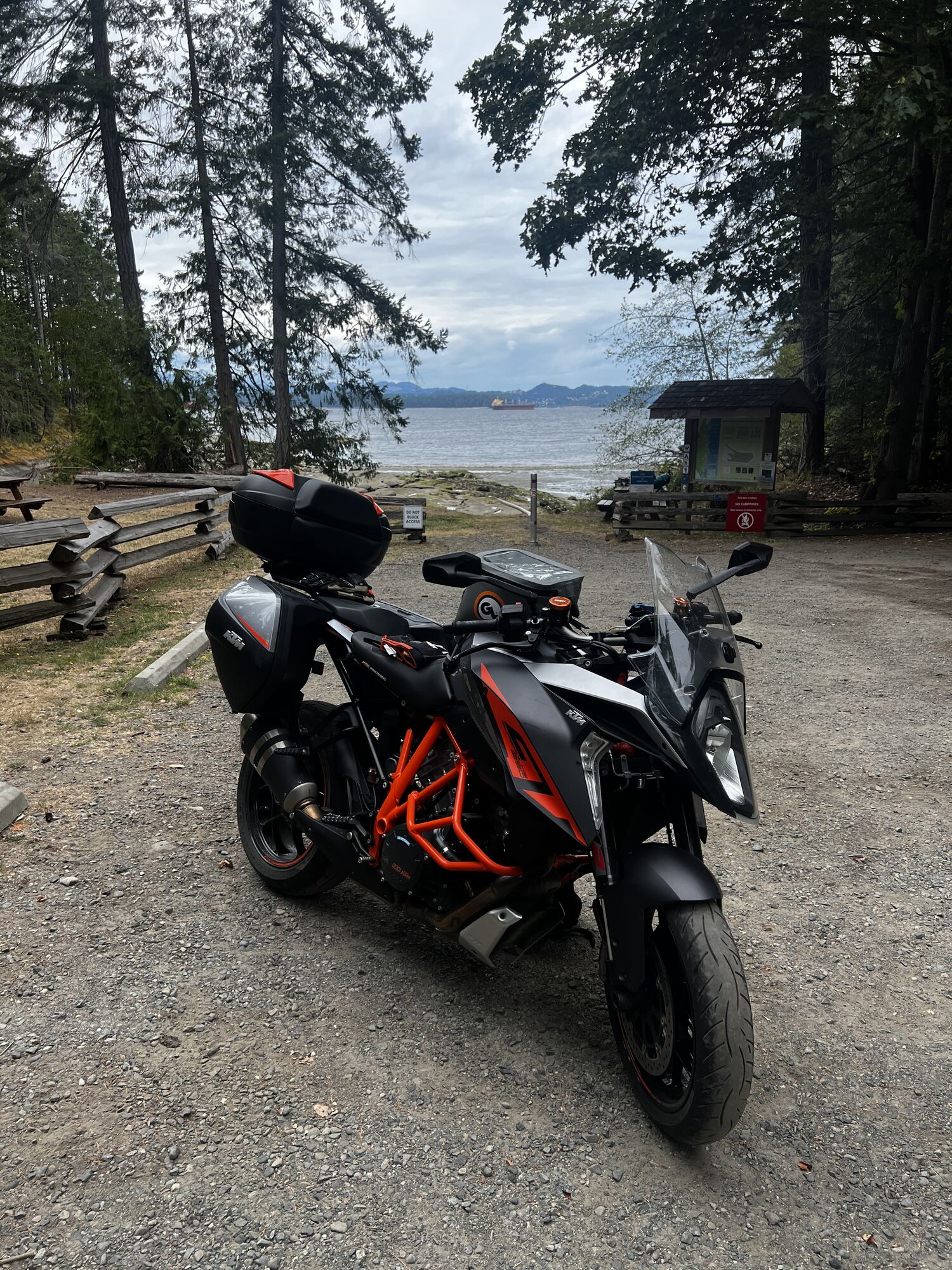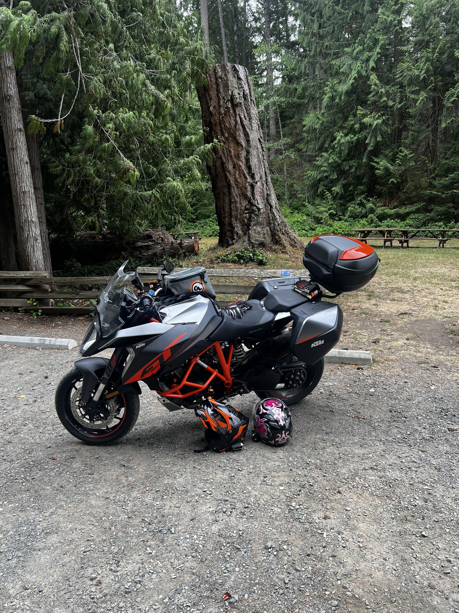 Took this bike on my first Moto camping trip down the Washington / Oregon Coast. That was it, I was hooked on adventure and exploring. Now a days we load it into the toy hauler to travel. On layer over days my wife rides pillion and we explore the area.