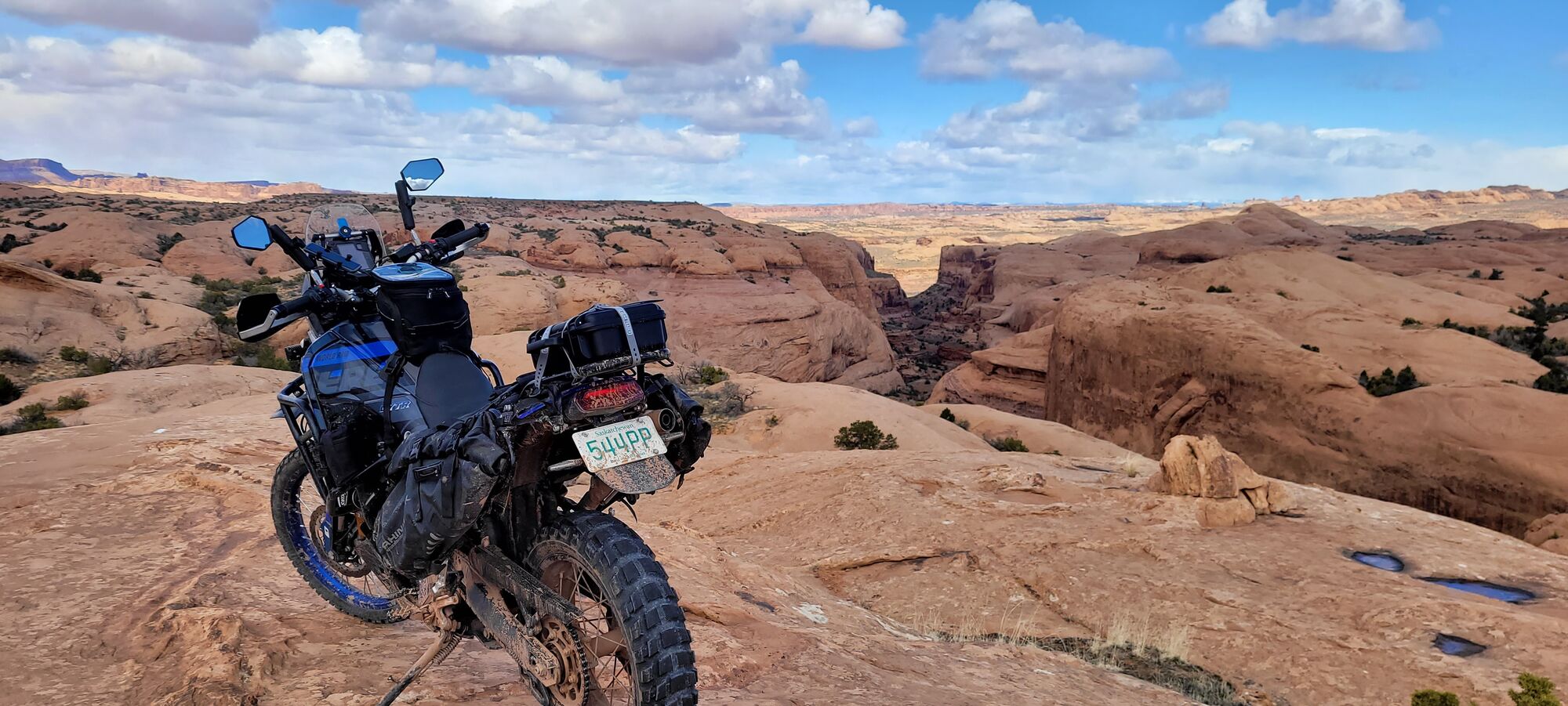 Kitted out with Camel Adv, Dirtracks, Axp, Acerbis and Barkbusters