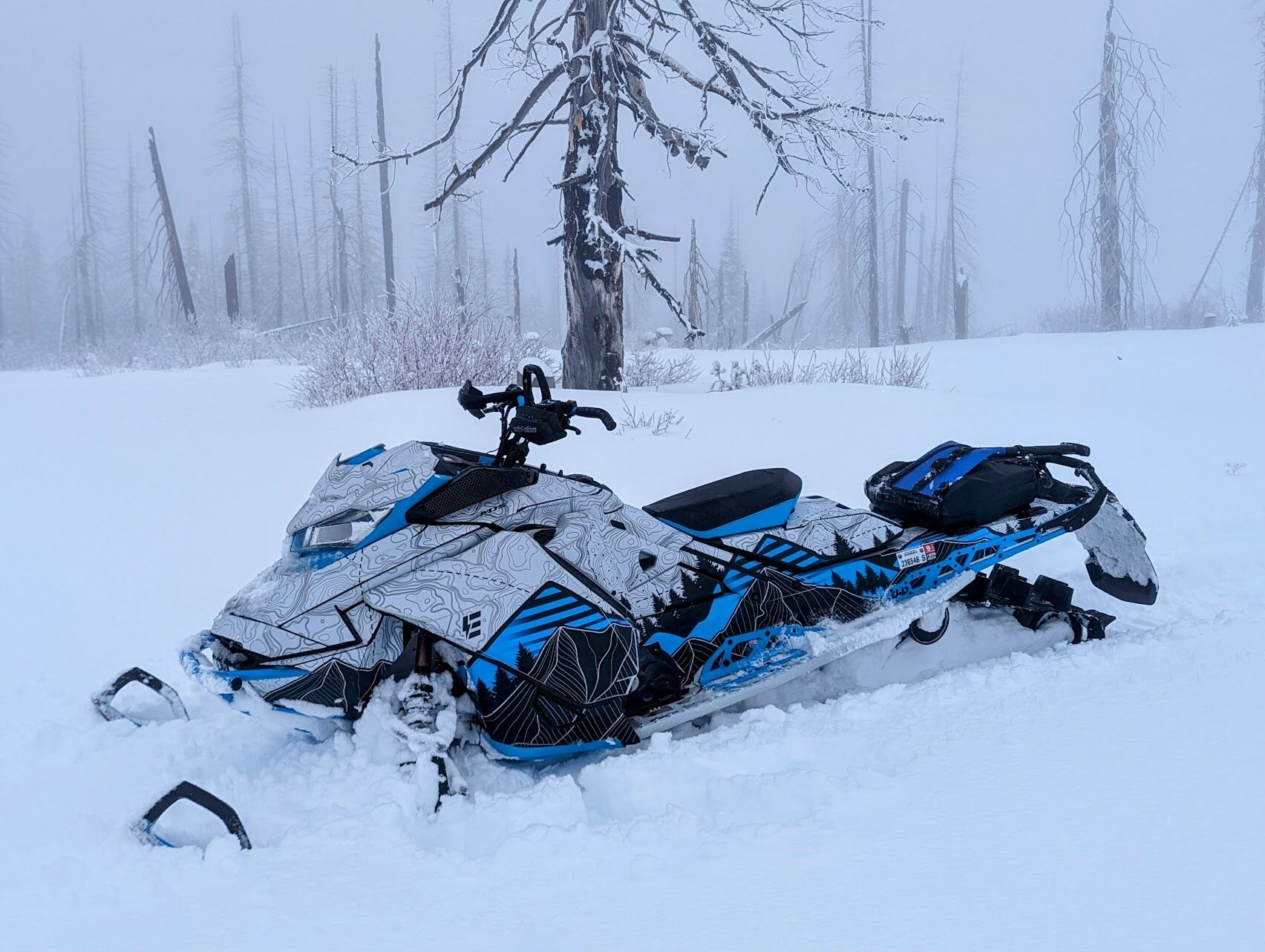Short couple hour ride to check out the snow, but the 4x4 ruts were terrible and the visibility was worse. Either way, I learned a few things, and hot myself out of a sticky situation in some powder. I'm hooked on the snow sports now.