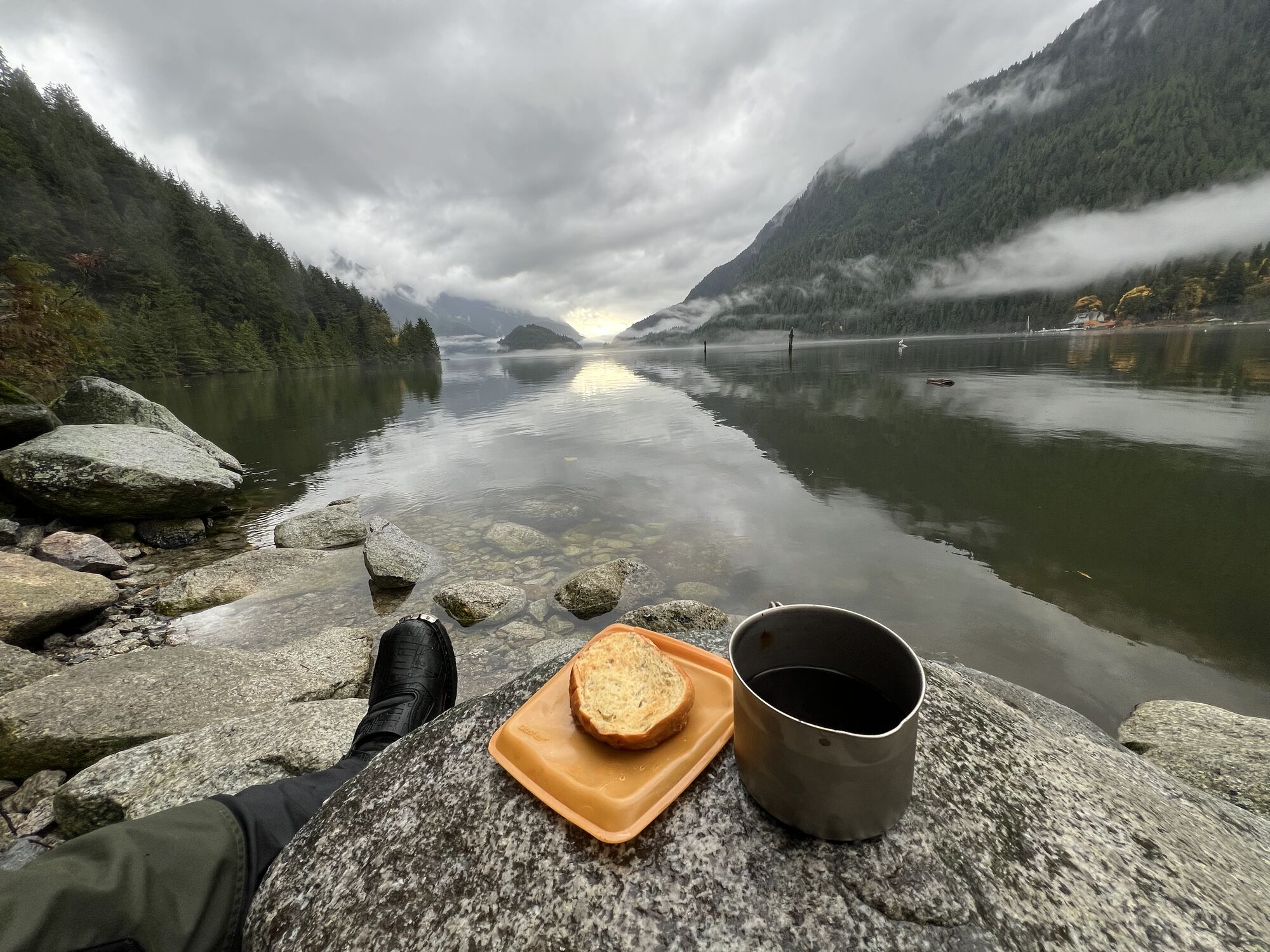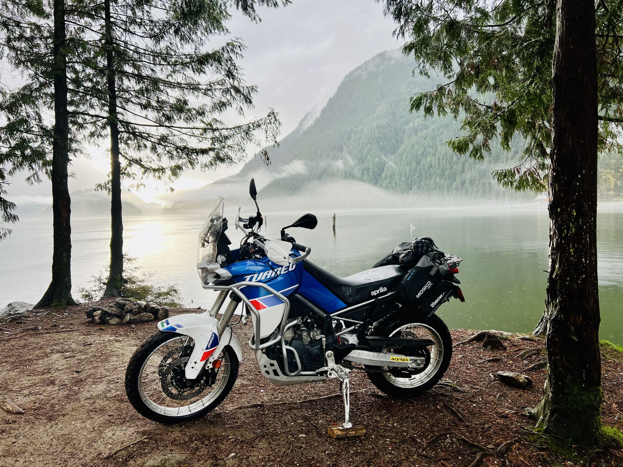 A very wet ride to Indian Arm. FSR was optimal - recently graded for winter pipeline work. No other ADV riders. Was a lone wolf. Had some breakfast and headed out. No spills or issues. Monmon is superb.