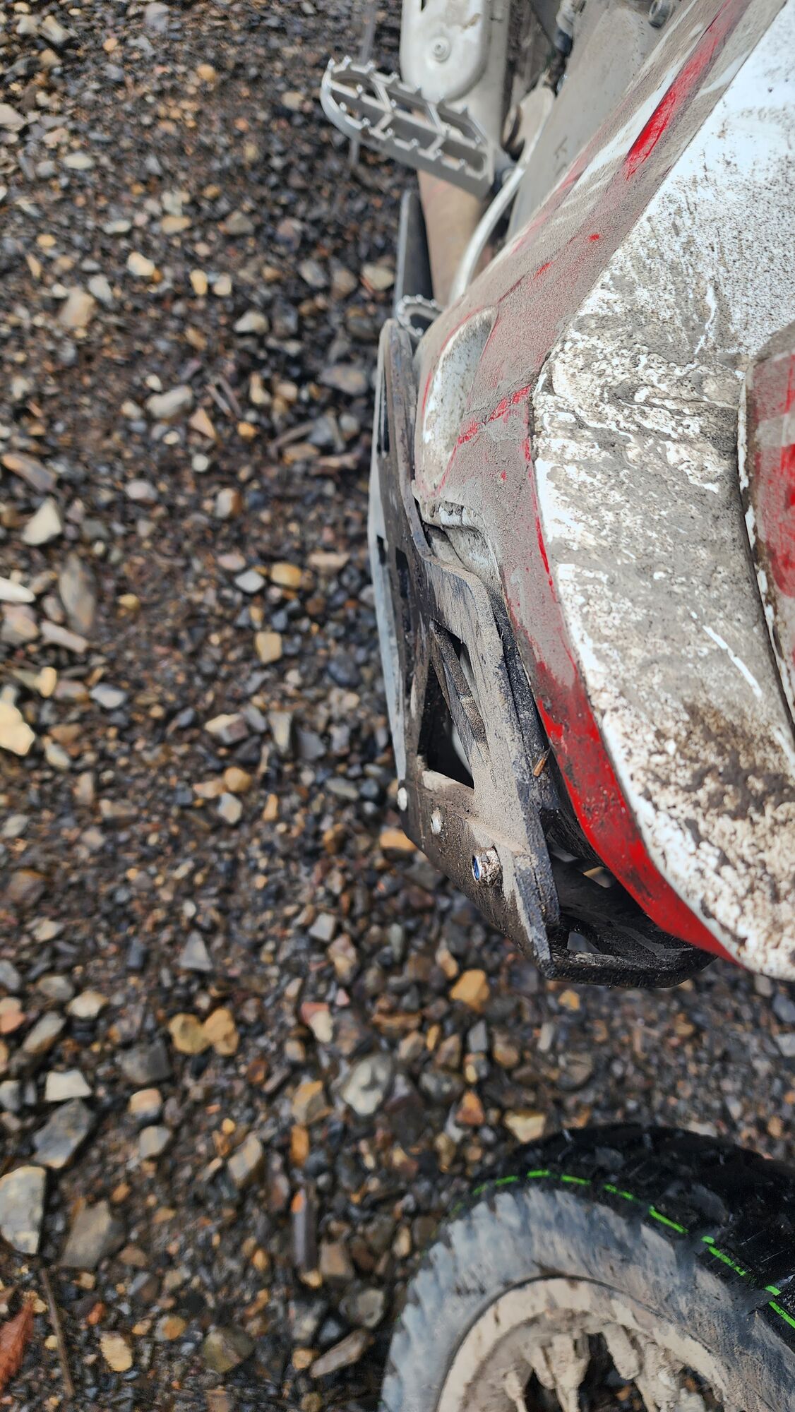 I did put the bike hard on to its side today shifting from 3 to 4th doing 70kmh plus whilst on a good sheet of ice I mistook as wet gravel. Slid a good 50 feet min and the only real issue is the missing rear signal, glad MotoMotion Canada installed the upgraded skidplate for me in the pdi. lol Pics of the pants and bike later, this also mentally kept me from pushing too much past 130km today.